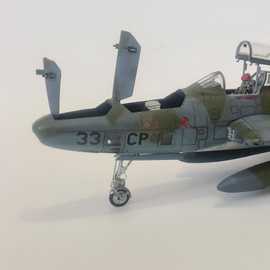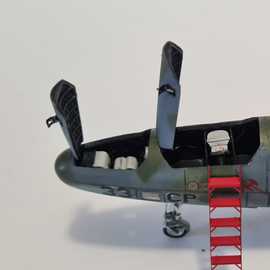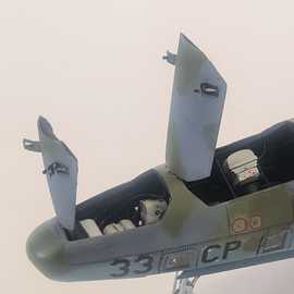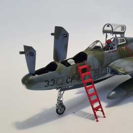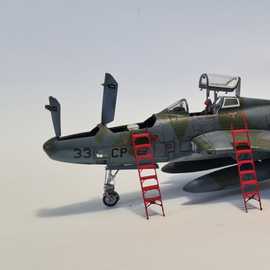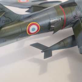 Républic RF-84F au 1/48 de chez Tanmodel. Accessoires: une planche de bord colorée Eduard de F84 dont j'ai découpé tous les cadrans et les ai réaménagés selon le schéma du RF-84, cameras et trappes de logements photos en résine, aérofreins en photodécoupe plus réalistes car ceux ci étaient très souvent en partie ouvert au parking.Les échelles sont des photodécoupe de chez L'Arsenal. J'ai choisi une version camouflée car je me souviens gamin en avoir vu deux atterrir alors qu'on longeait une piste dans la 203.